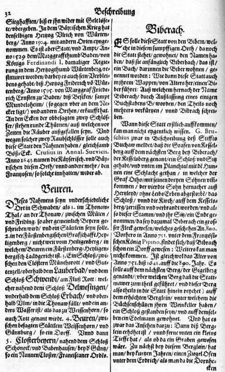 Daraus: "Beschreibung des SchwabenLands - Biberach"