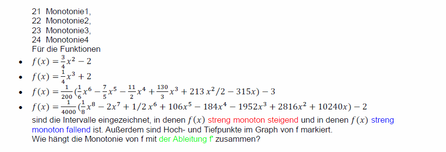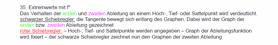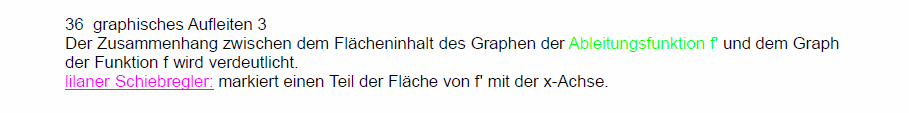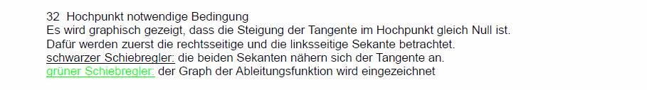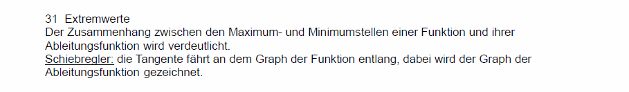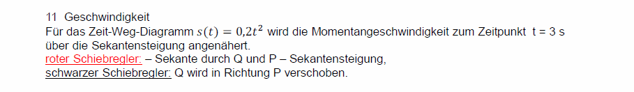 Dynamische Analysis / Einführung in die DifferentialrechnungIn den folgenden Arbeitsblättern sind Schiebregler und Schiebschalter vorhanden. Schiebregler verändern ein Bild stetig, Schiebschalter blenden (ggf. mehrstufig) zusätzliche Darstellungen ein. Die Arbeitsblätter lassen sich leichter bedienen, wenn die Mauszeigergeschwindigkeit nicht zu hoch eingestellt ist. Es dauert nur wenige Sekunden, bis die Javascript-App samt der Arbeitsblätter geladen ist. ![]() ![]() ![]() ![]() ⋄ ![]() ![]()