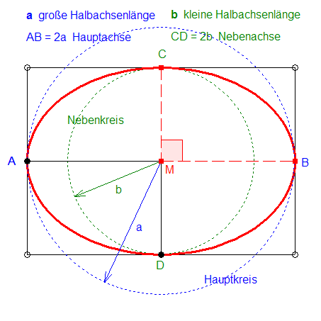Ellipse zwischen Haupt- und Nebenkreis