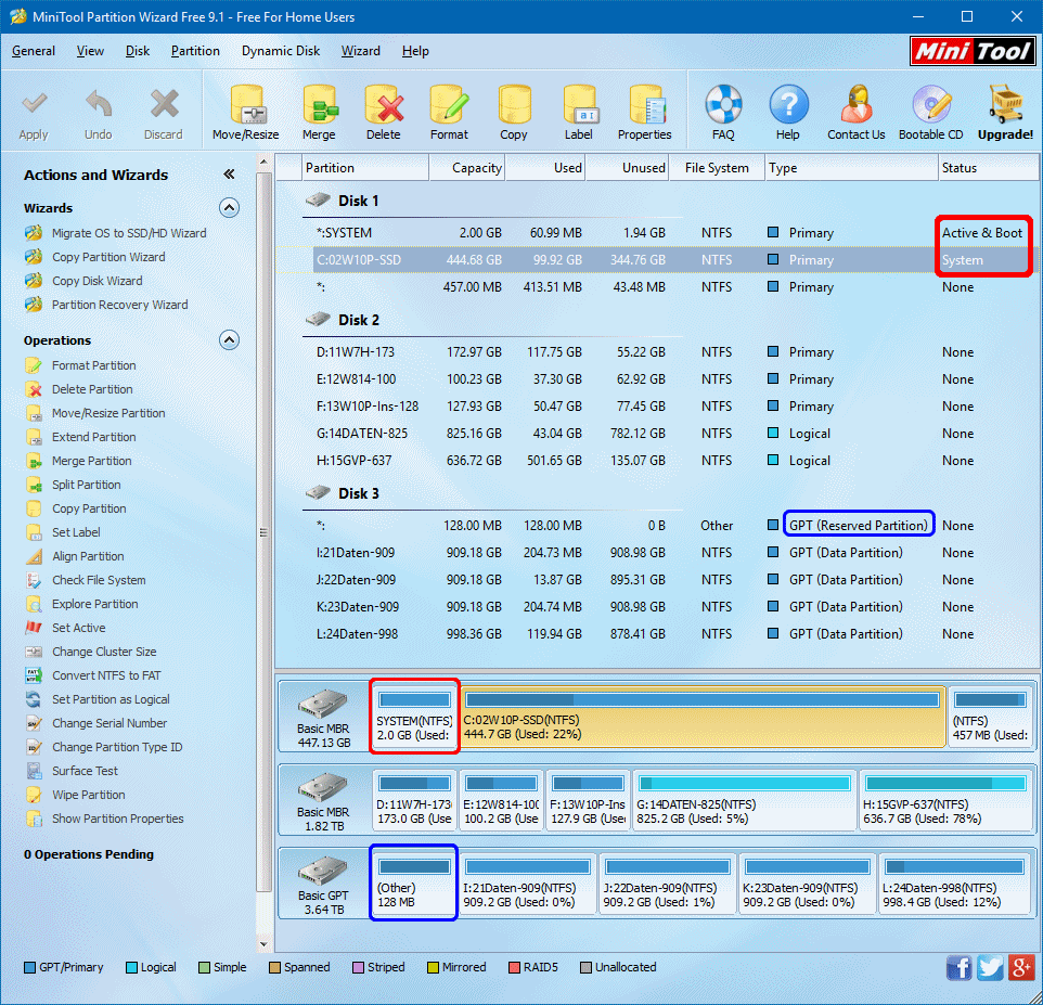 Betriebssystem und Daten sind auf den Festplatten in Partitionen abgelegt/organisiert. Möglich sind eine oder mehrere Festplatten und jeweils eine oder mehrere Partitionen. Die Partitionen sind in übergeordneten Inhaltsverzeichnissen/Partitionstabellen organisiert, auf BIOS-basierten PCs im MBR (Masterbootrecord) und auf UEFI-basierten PCs in der GPT (GUID Partition Table).
