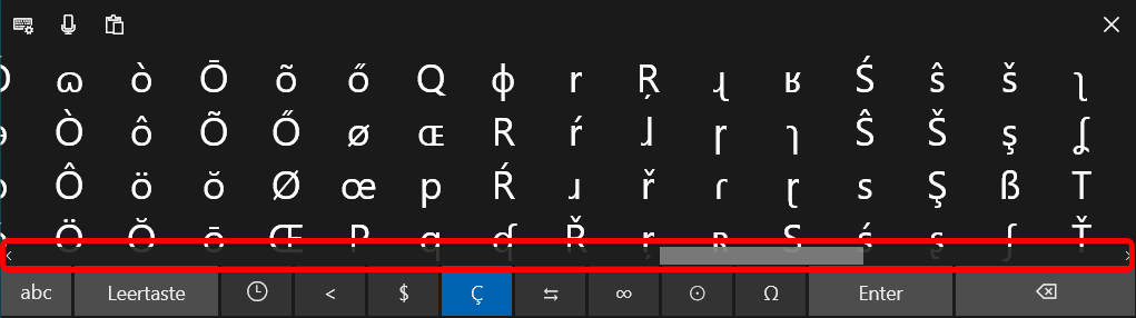 Um alle paneuropäischen Zeichen zu erreichen, müssten Sie also waagrecht scrollen können. Aber leider haben die begnadeten Programmierer dafür anstelle des Rollbalkens aus W10 das Mausrad für W11 vorgesehen!