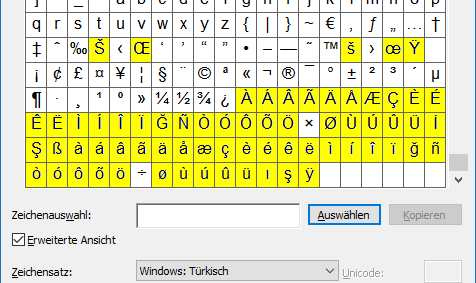 Einen Ausweg bietet in Windows für alle Editoren der Dienst Windowszubehör > Zeichentabelle (charmap.exe; siehe
