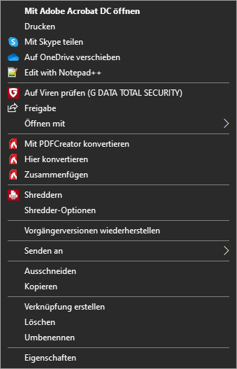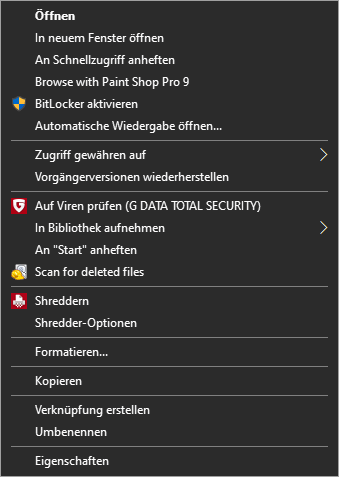 Diese Folgemenüs sind aber die kompletten Kontextmenüs von W10! *) Diese Folgemenüs können offensichtlich auch direkt über Shift + F10 aufgerufen werden. Dass Objekte auch mittels Enter direkt geöffnet werden können, ist eigentlich klar; dass man mittels Shift + Enter den jeweiligen Eigenschaftendialog direkt öffnen kann, ist hingegen neu (beides blasspinkfarben markiert). Diese durchgängigen Bearbeitungsmöglichkeiten Enter , Shift + Enter und Shift + F10 versöhnen ein wenig mit dem neuen Layout. W10
