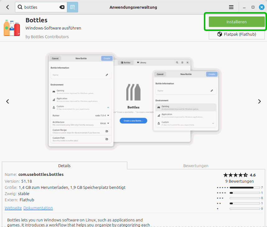 Einrichten von Windowsprogs in unterschiedlichen Bottles