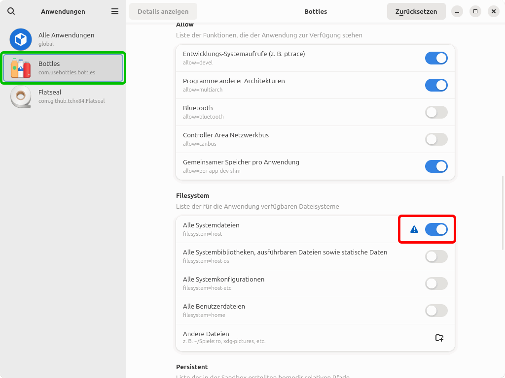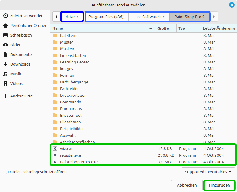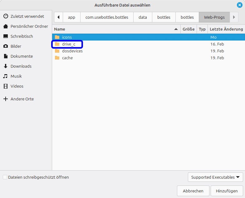 Aufruf von Windowsprogrammen über einzelne Bottles