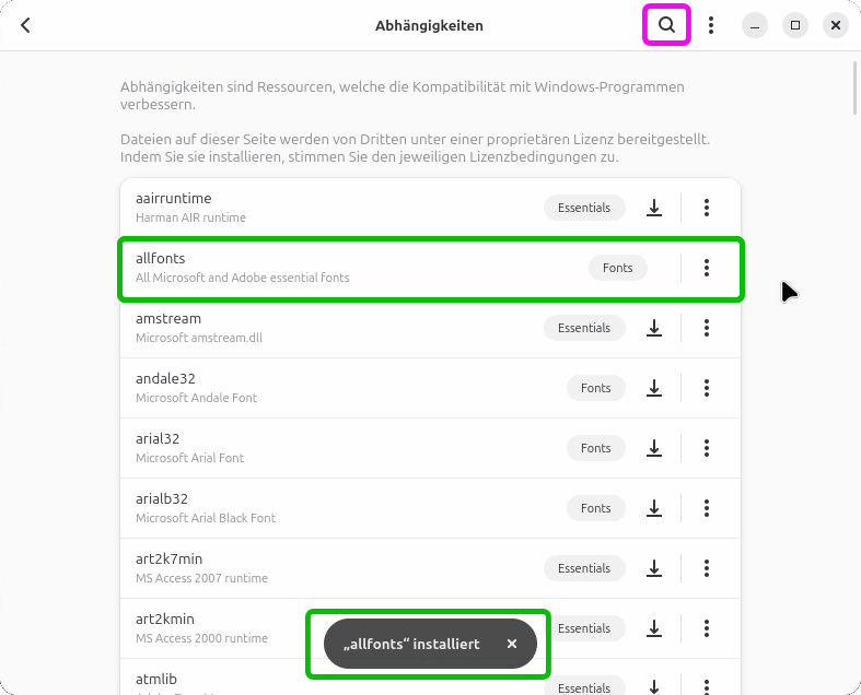 • Seit Herbst 2025 wird als Alternative zu Wine eine neue Kompatibilitätsschicht namens Winboat empfohlen, die anscheinend auf