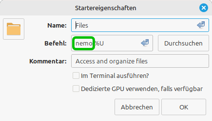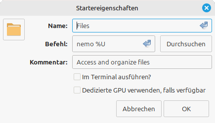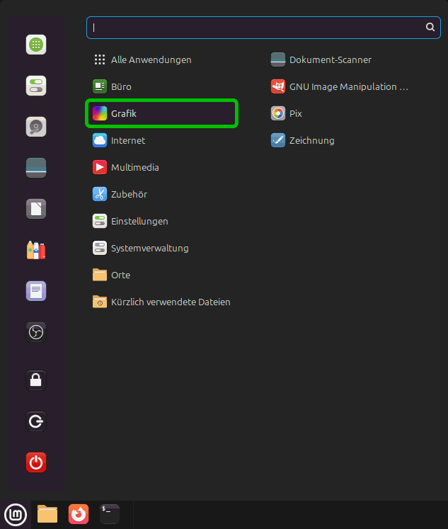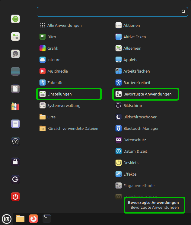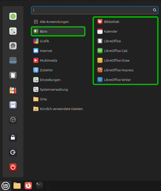Anwendungsmenü / Startmenü / Favoritenleiste