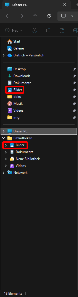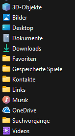 Das wiederum bedeutet, dass die Benutzerordner Dokumente, Bilder, usw. ebenfalls irgendwo im Ordnerbaum eingebunden sein müssen und daher eigentlich keinen schnellen Zugriff bieten (Abhilfe ⋄