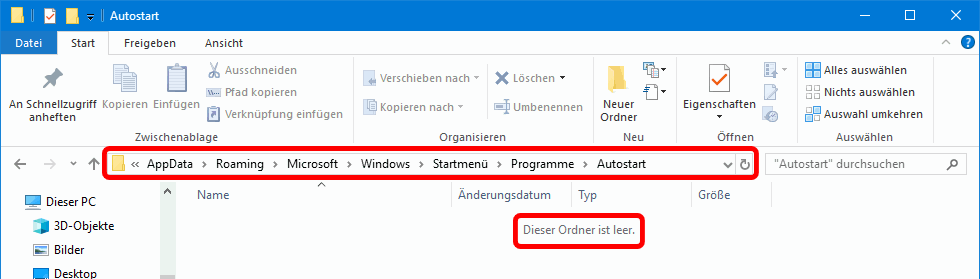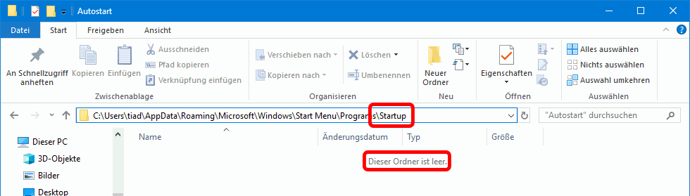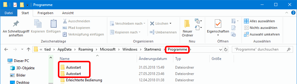 Der eine ist auch leer (s.r.). Das ist aber der offizielle Autostartordner-Ordner von Windows 10 namens Startup.