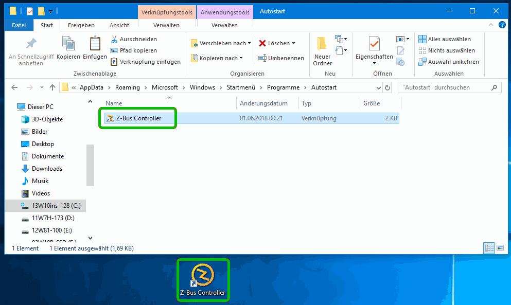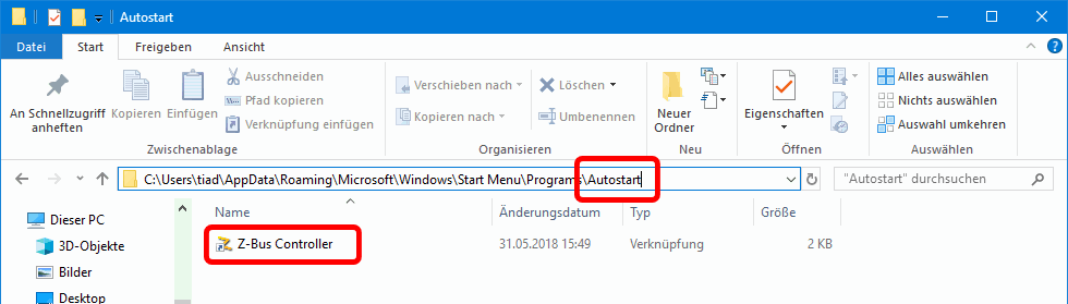 5. Im Autostartordner wurde ebenfalls ein Programmlink zum Z-Bus-Controller abgelegt.