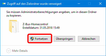 Wenn Windows wieder mault, bestätigen Sie mit Fortsetzen (s.l.).