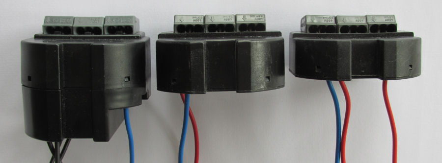 Die Empfänger wurden grundsätzlich in die sowieso schon vorhandenen Abzweigdosen verfrachtet, damit wir beim Lampenkauf nicht an zusätzlichen Stauraum für die Empfänger in den Lampengehäusen denken mussten.